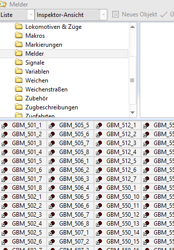 In der Abbildung sind gleichzeitig Kontaktmelder und Bahnwärter ausgewählt.