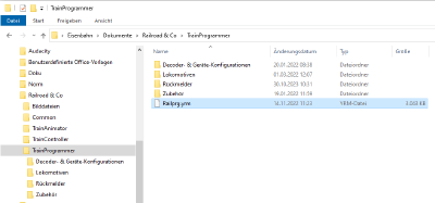 - Die Decoderdatenbank, mit der TrainProgrammer arbeitet, ist im Installationsverzeichnis von TrainProgrammer in der Datei Railprg.yrm gespeichert.