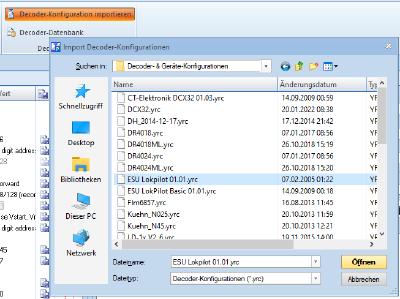 Für den TrainProgrammer gibt es auch Decoder-Vorlagen, die z.B. von Herstellern oder erfahrenen Modellbahnern zur Verfügung gestellt werden. Diese Dateien haben Endung *.yrc