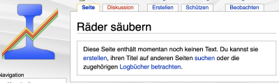 Jetzt folgt die eigentliche Erstellung des neuen Artikels. Dazu klicke ich auf roten Link mit dem neuen Artikelnamen Räder säubern.