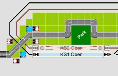 Man könnte bei dieser Variante in TrainController Silver oder Gold die Bahnschranken durch die Operationen der Weichenstraße schließen und öffnen und somit gewährleisten, dass der Zug nur bei geschlossenen Schranken über den Bahnübergang fährt.
