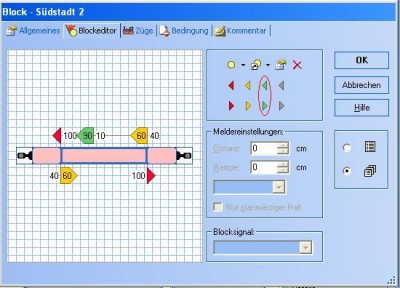 - unter Freigabe von Blöcken und Weichenstrassen wird der Zeitpunkt der Freigabe mit An der Haltemarkierung ausgewählt