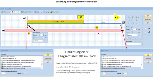 Ab TrainController Version 9 wurde die Möglichkeit geschaffen, eine zeitweilige Geschwindigkeitsbeschränkung mittels Aktionsmarkierung und mit variablen Werten zu erzeugen.