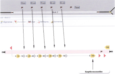 Bedingt durch die variable Länge der Wagen wird ein variabler Bremsmelder, eine variable Rampe und ein variabler Haltmelder benötigt.