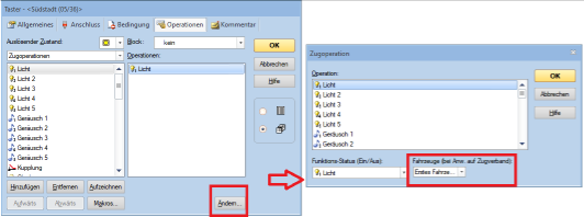 Es reicht aus, wenn in der Lok eine alternative Adresse (Funktionsdecoder des Wagens) eingetragen wird. Möchte man Lokfunktionen im Wagen in einer Operationsliste schalten, dann wählt man als Operation Alle Fahrzeuge.