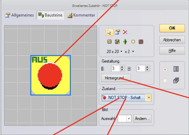 In diesem Beispiel wird ein „Not-Ausschalter" mit erweitertem Zubehör erstellt. Natürlich lassen sich so auch beliebige andere Elemente erstellen.