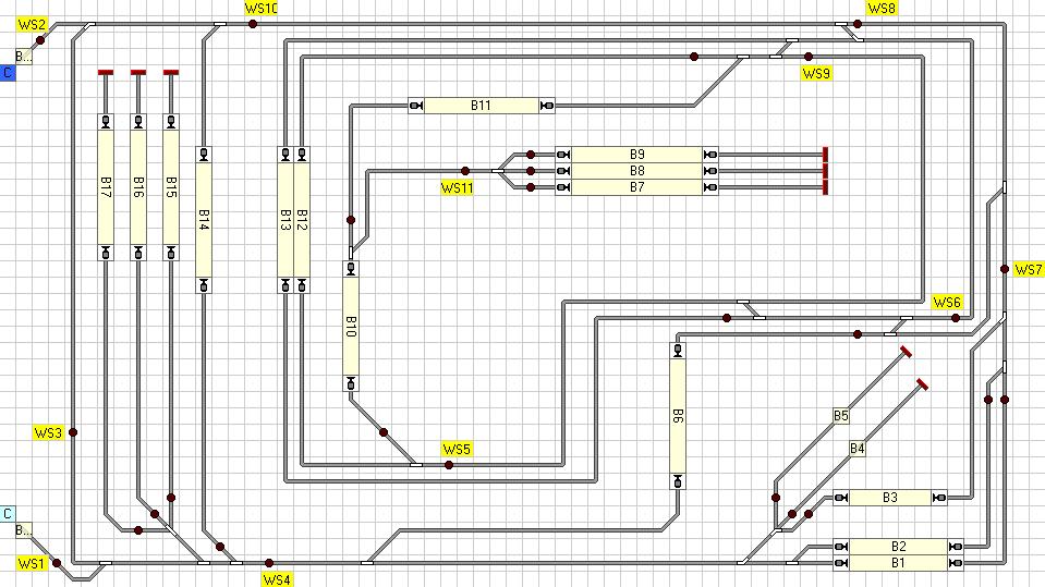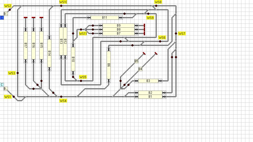 Nahe läge nun, einfach einen weiteren Block einzufügen, um diese hohe Entfernung in zwei Teile zu teilen. Das lässt sich aber nicht immer auch auf der Anlage umsetzen (Stichwort: Rückmelde-Abschnitte). Daher ist ein weiterer Ansatz, einfach die Ausdehnung des gesamten Stellwerkes zu reduzieren und die Anlage insgesamt kompakter dazustellen.